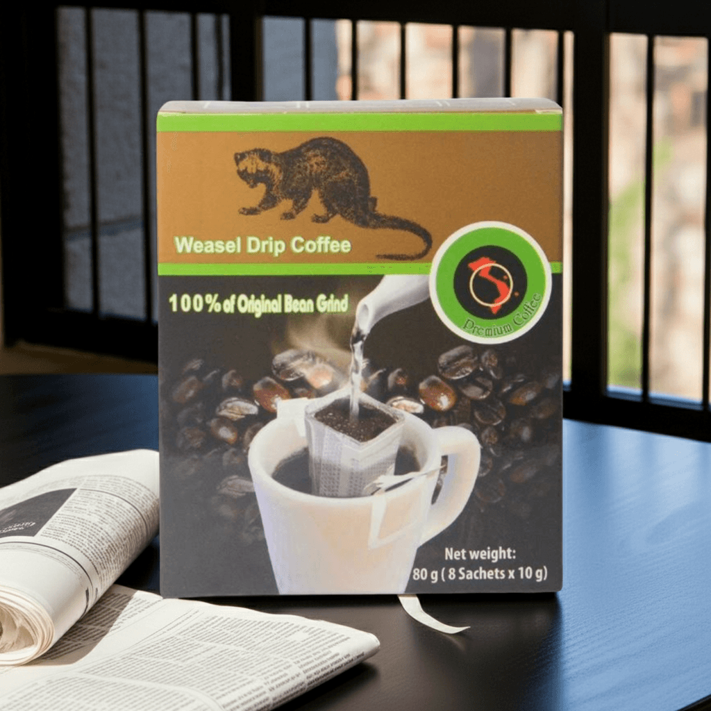 Indulge in the exquisite taste of premium Vietnamese weasel coffee! ☕️ This carefully crafted coffee blend brings tradition and modern production techniques together for an exceptional experience. Enjoy a delightful coffee break with every sip. Key Benefits ✅ • Rich and bold flavors of civet coffee • Crafted with a modern production process • Freeze-drying technology preserves natural aroma Features 🌟 • Packed in a silver bag for freshness • Expiration Date: 18 Months • Made in Vietnam Specifications 📌 • Contains: 10 grams per pack x 8 packs • Storage: Keep in a cool, dry place away from sunlight